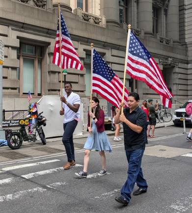 Hundreds of ardent patriots gathered in Battery Park on morning of July 4 to participate in the Lower Manhattan Historical Association’s ninth annual Independence Day Parade.