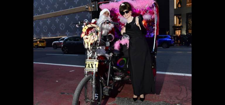 Revisiting the opening scene of Breakfast at Tiffany’s in the midst of Christmas mayhem on Santacon Saturday, KQS meets a jolly Santa pedi-cab driver.