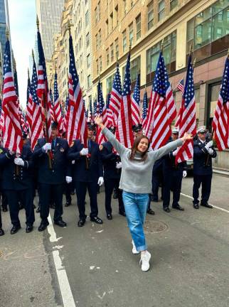 “I’ve been here since 2005, but this is my first parade,” said Leeza Koval, who said she was half Russian and half Ukrainian. She blew kisses to the firefighters carrying the American flags.