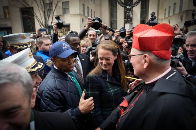 Mayor Eric Adams told reporters as he was stepping off, “Our firefighters, our teachers, our members of the Police Department, this is a blue collar community. I’m a blue collar mayor. I feel home at this parade.”