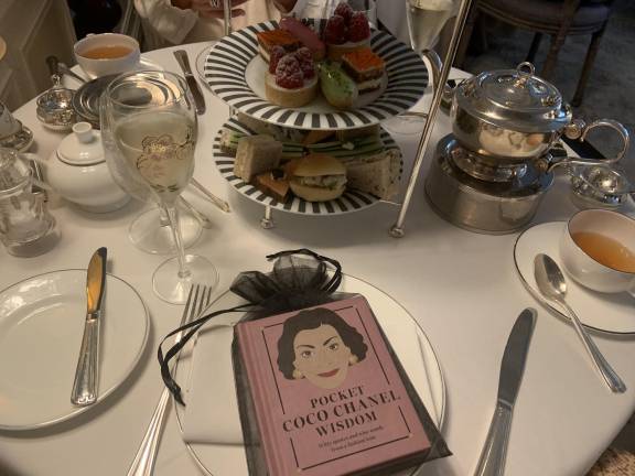 The special’s Chanel twist includes a glass of French rosé Champagne, a camellia-infused tea inspired by the designer’s signature bloom, Chanel-themed cookies and a copy of Pocket Coco Chanel Wisdom, a book filled with Chanel quotes that is small enough to fit in a clutch purse.