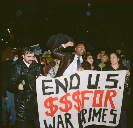 A handful of local officials joined the pro-Palestine demonstration. “A cease-fire is not a sign of weakness, but a testament to our strength as leaders and as peacemakers,” said Brooklyn Assembly member Phara Souffrant Forrest in a speech. “By calling for a cease-fire, calling to bring the hostages home, calling for aid to be let into Gaza, we demonstrate our commitment to preserving life, promoting justice, and working toward a lasting solution.”