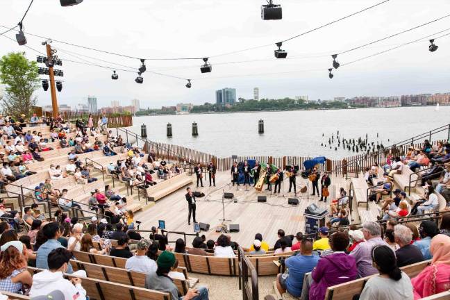 Numerous free performances are scheduled throughout each day, with advanced tickets available for purchase at littleisland.org for access to the nightly performances that will take place in The Amph, the 687-seat performance space overlooking the Hudson River.