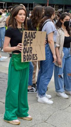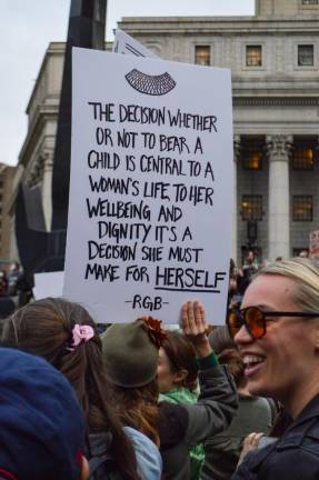 Later in the evening, that energy came to fruition. Speeches from comedian Amy Schumer, Manhattan Borough President Mark Levine and James, among others, roused the crowd of protesters, which yelled chants of “Not the church, not the state, people must decide their fate” and “My body, my choice.”