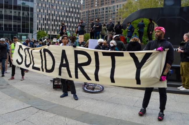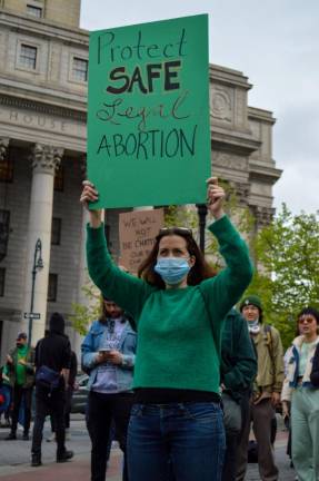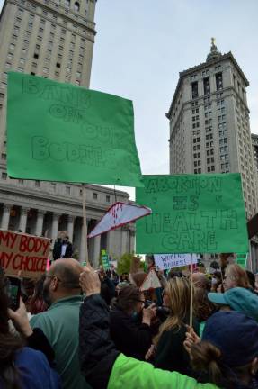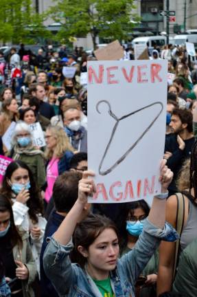 The day of protest downtown began less than 24 hours after a drafted Supreme Court majority opinion stating an intent to overturn Roe v. Wade was leaked, a rare breach that lit a fire under pro-choice activists in the city and nationwide. “This is a five-alarm fire, my friends,” said New York Attorney General Letitia James, addressing the crowd at Foley Square. “This is a time to act and this is not the time to be silent.”
