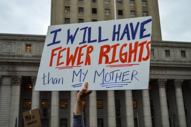“I’m actually shocked that I have to be here today,” said Sheila Montgomery, who attended the Foley Square demonstration. “I feel like I’m in an alternate universe.”