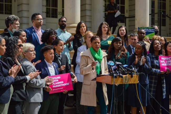Council members joined New Yorkers to rally for abortion rights on Tuesday after the leaked Supreme Court draft majority opinion — poised to overturn Roe v. Wade