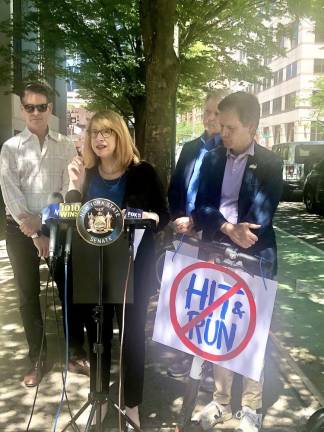 “I can’t think of anything that’s more cowardly, unconscionable, and morally depraved than that causing the death of an individual and leaving the scene of a crash – and that’s exactly what happened here,” state Sen. Brad Hoylman said Wednesday at the corner of West 64th Street and Amsterdam Avenue, where the June 4 incident took place. Hoylman, joined by Assembly Member Linda Rosenthal, announced the legislation that would bring the consequences for e-scooter riders who flee the scene of a crash in line with those operating automobiles.