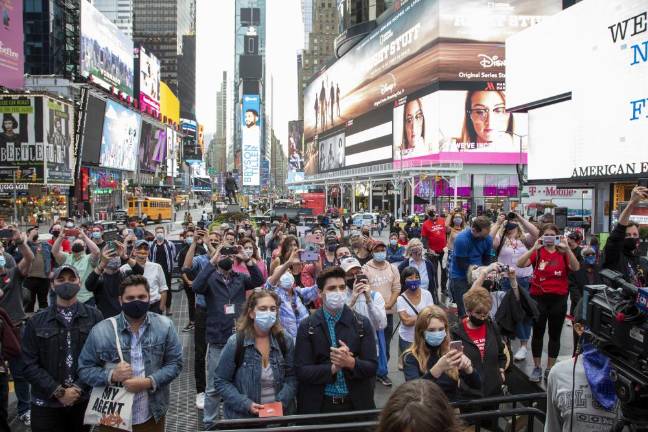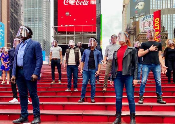 The theater community came together in Times Square on Wednesday, Oct. 7 for the first time since Broadway was shut down due to the COVID-19 pandemic in March. The event, “A Moment for Broadway,” was organized by the volunteer organization NYCNext as part of a series of pop-up performances designed to bring renewed vibrancy to the city.
