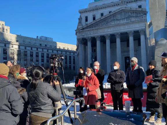 Speakers at the rally included Senator Chuck Schumer and State Senator John Liu, as well as family members of recent anti-Asian hate crime victims. “It’s not a time to be shy,” said Elizabeth Kari, daughter of assault survivor Vilma Kari. “It’s a time to come together to make sure people understand that this just isn’t a trend that’s appeared. It’s something that we’ve been living with together for many decades.”