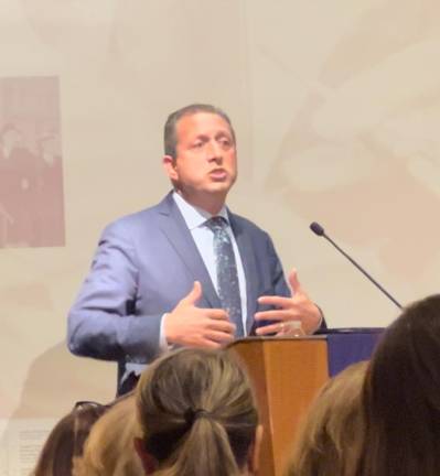 Then it was time for the big-name speakers, who broadly summarized what their jobs entailed and what they’ve been prioritizing recently. State Comptroller Tom DiNapoli, New York’s chief financial officer, described how he was responsible for everything from pensions to making sure legislators such as Bores get paid: “In the worse case scenarios, we find people stealing money! Then we hold them accountable.”