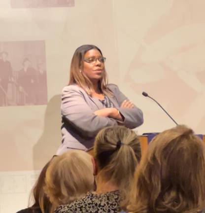 James, the Attorney General, kicked things off by mentioning that NY Governor Kathy Hochul had just informed her about receiving a cancer diagnosis. James said that there was reason to be optimistic about the governor’s prognosis, and that the offending cancerous patch would be quickly removed from her nose by the next day.