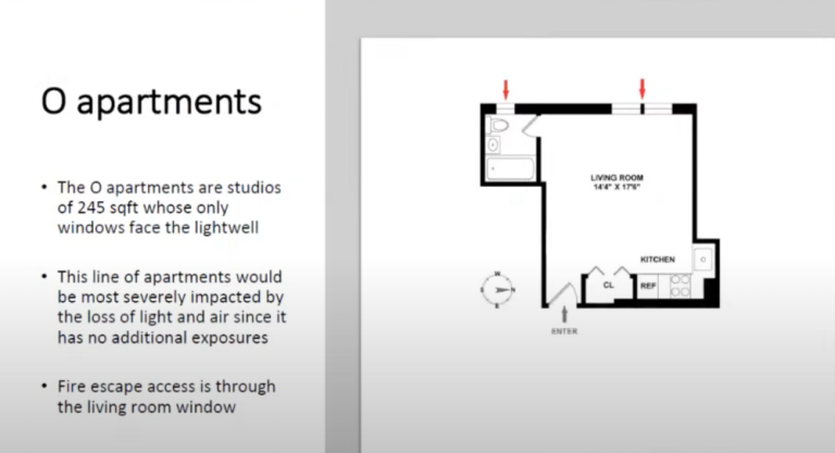 Others offered advice for finetuning residents’ pleas. Elizabeth Rose suggested that complaints about how construction would impact the value of residents’ apartments weakened their overall argument. Up until now, concern about a possible plummet in the desirability of apartments in the co-op has been one focal point of residents’ grievances.