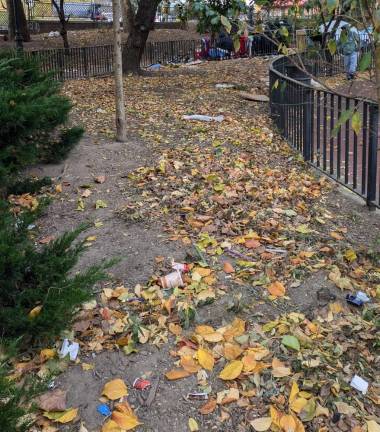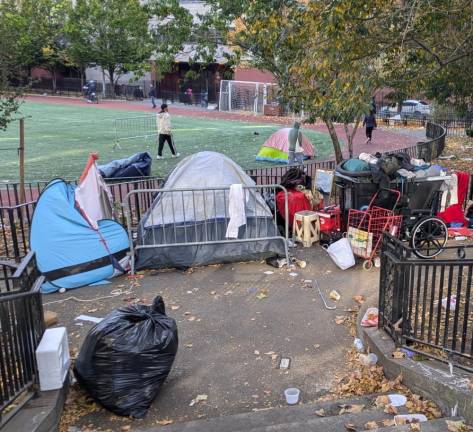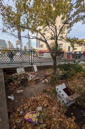 The density of the homeless camp today— and the immensity of the trash strewn all around the park’s perimeter, including discarded drug paraphernalia—represents a new level of not-so-benign neglect.