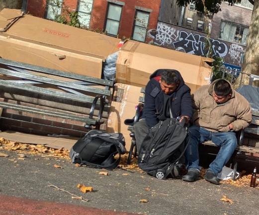 Scarcely a week after the city again cleared out the notorious Manhattan Bridge Plaza shanty town—this time with emphasis, including stenciled signs reading “NYC DOT Property No Trespassing”—a resurgent homeless settlement at the southern end of Sara D. Roosevelt Park has sprawled to life.