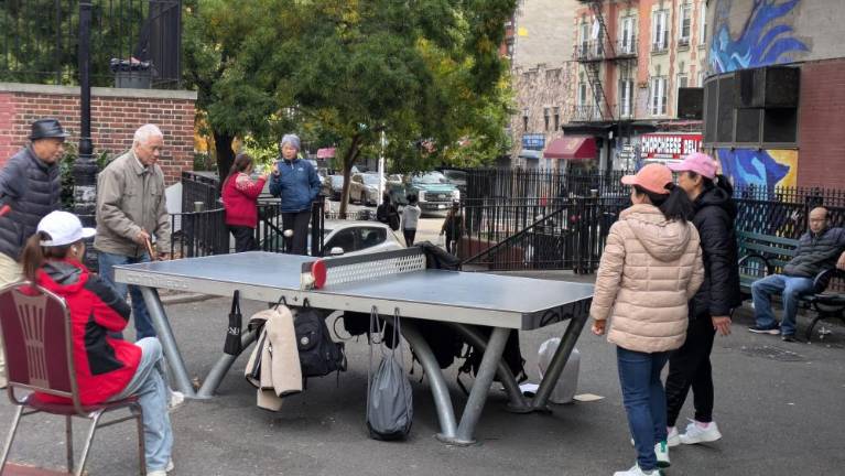 Foremost, it’s a gathering place for the people of nearby Chinatown: middle-aged and elderly men playing cards and smoking; men and women playing table tennis; women doing group dance exercises to Chinese-style music on the artificial grass soccer field; and women playing cards among themselves.