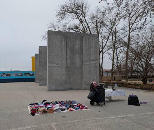 Wanna buy a bootleg Yankees hat or mango slices in the middle of the eight massive granite walls of the Maritime Memorial, honoring the 4,601 missing American servicemen who lost their lives in combat in the Atlantic Ocean during World War II?