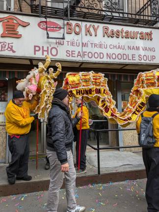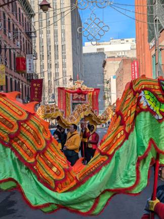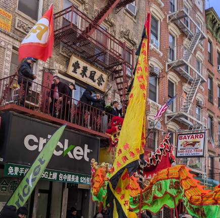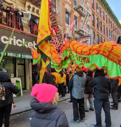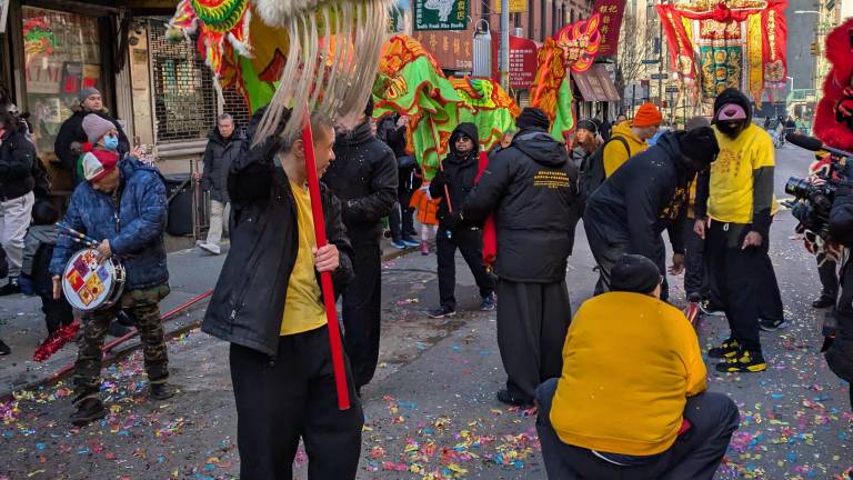 Thousands of spectators swarmed the streets of greater Chinatown on Feb. 8 to enjoy the sights and sounds of the annual “Super Saturday” Lunar New Year Lion Dance Parade. While temperatures in the 30s and overcast skies meant some attendees stayed out only as long as cold hands and feet allowed, the event was a multi-generational delight, and arguably the highlight of the multiweek celebrations that make up Lunar New Year in Manhattan.