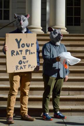 That morning, City Council members directed some of their comments toward two people dressed as rat protesters, who stood cooperatively beside them. “Rats may be our neighbors, but they are not our friends,” said Abreu, who represents Levine’s former district.