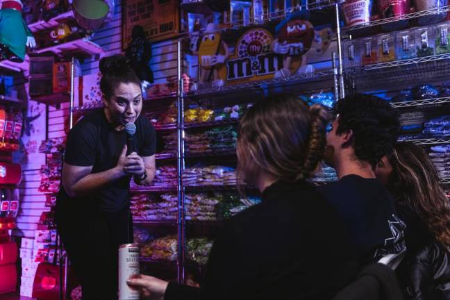 The early-twenties Levine and Mansoor are new to the comedy world but, for this latest production in their Underground Overground series where small stores transform into comedy clubs overnight, they walked the aisles like assured impresarios.