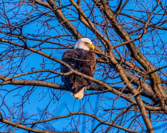 The bald eagle was the subject of an email news alert on Jan. 22 from Dan Garodnick, President and CEO of the Riverside Park Conservancy. "Conservancy Gardeners first saw the 'stoic' eagle flying above the Park yesterday before it settled on a perch at 113th Street, near the Forever Wild Woodland, seemingly unruffled by the enthusiasm of several spectators," Garodnick wrote. He also noted that park users on Twitter had seen the eagle flying over Grant's Tomb at 122nd Street later that day.
