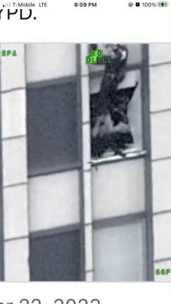 In a daring rescue, a member of the NYPD’s elite ESU rescue team rappelled down the side of a high rise apartment building on West 56th St. and forced a man who was wanted by the FBI and dangling from a 31st floor window back inside his apartment, saving his life.