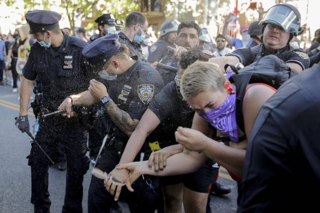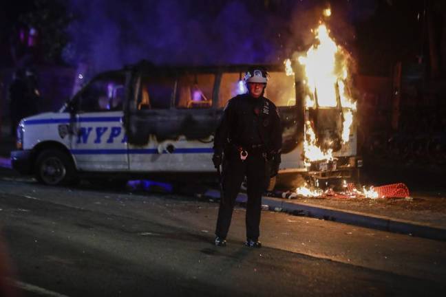 New York City police said 345 people were arrested, 33 officers were injured and 27 police vehicles were damaged or destroyed by fire. There were no major injuries reported. Police Commissioner Dermot Shea said some peaceful demonstrations were “hijacked’’ by people with violent intent.