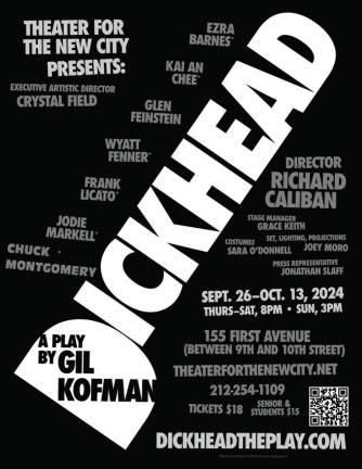 “Dickhead” kicked off on September 26 and runs through Oct. 13. Located at 155 1st Avenue, Theater for the New City was founded in 1971 and is known familiarly as “TNC,” It is also known for highly progressive political plays and community commitment. This one fits the bill.