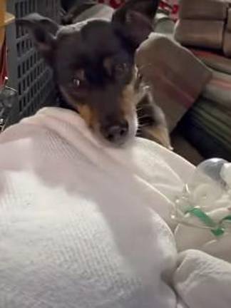 ”It’s tough because she’s a very affectionate dog and needs human contact,” he said. “The miraculous thing is she didn’t suffer any external burns.”