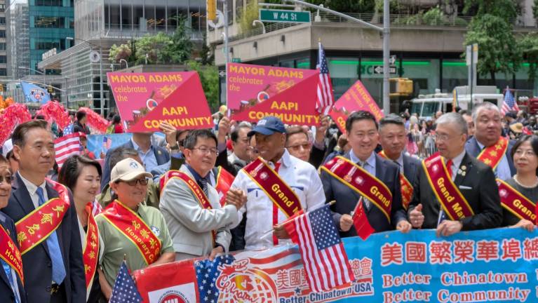 There were exceptions to the parade’s mostly Chinese cast, starting with Mayor Eric Adams, whose close relationship with his since- resigned Chinese community liaison Winnie Greco, is believed to have been one cause of Hizzoner’s myriad legal woes of 2023-24.