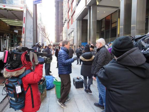 He joined the NYPD’s Bus Lane Enforcement Task Force along 57th St in Manhattan to hand out summonses to vehicles parked in bus lanes on both sides of the street. This was an effort to keep the lanes clear and speed up buses, between 8:00 a.m. and 8:45 am.
