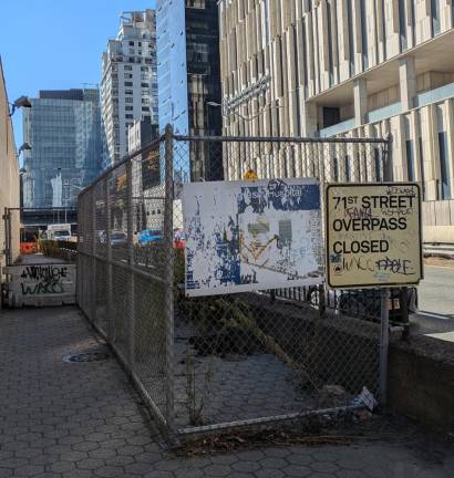 Just as Green met a premature ending, so too does the Greenway, which, heading uptown, stops at 71st St. A zig-zag ramp takes one back to street level, where an expansion of the Hospital for Special Surgery (HSS) called the Anna-Marria and Stephen Kellen Tower has been under construction since October 2021.