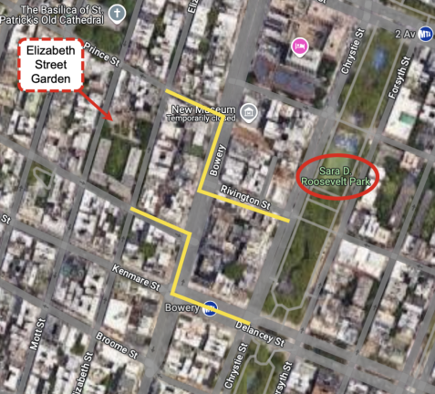 Tellingly omitted from the map: Sara D. Roosevelt Park, three short blocks east of ESG, including M’Finda Kalunga Community Garden.
