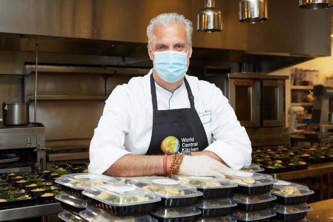 Long a leader in the restaurant industry, Ripert wasn’t prepared to wait out the pandemic at his homes in Manhattan and eastern Long Island. As vice chairman of City Harvest, he was already involved in a charity that collects 70 million pounds of food a year for soup kitchens and food pantries. He is also a close friend of Jose Andres, the Spanish chef who founded World Central Kitchen to bring food to victims of natural disasters in Haiti and Puerto Rico, and who was setting up shop in Harlem to respond to the COVID crisis. Consulting with those two groups, Ripert decided to do his part by feeding the 400 doctors and nurses who had come to New York City from out of state and were lodging in midtown hotels.