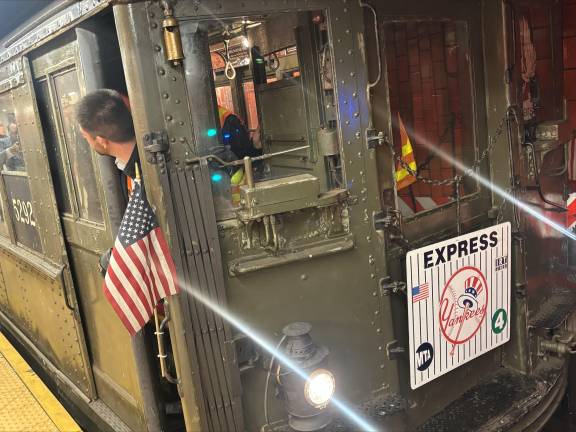 NYC Transit has run Yankee Express on opening day for the past several years. A woman named Michelle was on board with her young daughter Lulu and her husband. “It’s amazing,” she said of the vintage car as it pulled out of Grand Central.