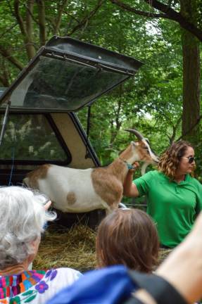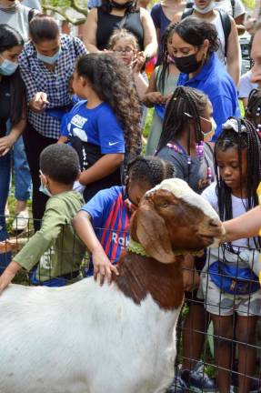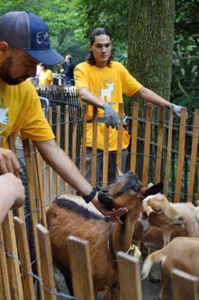 Aside from their environmental work — which includes drawing attention to the Conservancy’s Woodland Restoration Initiative — the goats will also serve to bring the surrounding community together. During the “Running of the Goats” event, onlookers joined the SoHarmoniums, a women’s choir led on Wednesday by Elizabeth Núñez, in a rendition of The Sound of Music’s “The Lonely Goatherd” and kids reached out to pet one of the many goats.