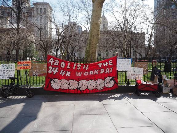 Councilmember Marte was in the crowd. Though he hadn’t heard from Speaker Adams, he said, he knew she was aware of the hunger strike. He urged her to support the bill. “If we are the most progressive city council, then this should be a given that no one should be working 24 hours, right? It’s not even a conservative issue, it’s not a progressive issue — it’s a moral issue. And if you can make the most vulnerable population do this, then you can allow anyone to work 24 hours,” he said.