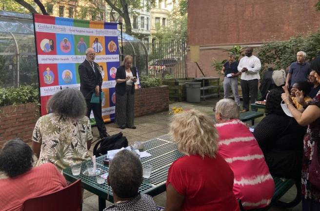 Community members gathered in the Phelps Garden at Goddard Riverside Community Center on Monday to celebrate the annual “Good Neighbor Awards,” a Goddard Riverside tradition which first began in 2001. Among this year’s winners are a podcaster, a Community Board 7 member and a mother-daughter duo. Overall, eight individuals representing the Upper West Side, Harlem, East Harlem and Yorkville were honored for their extraordinary work as volunteers in helping to build a better community.