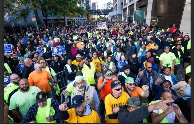 Thousands of construction workers rallied on W. 18th St. near the site on Oct. 23 and heard the President of the Building and Construction Trades Council, Gary LaBarbera, denounce the opponents of the Related/Wynn development plan as Manhattan elitists.