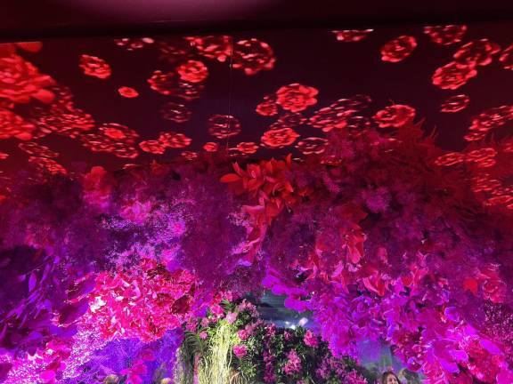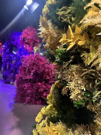 Among the people who got a sneak preview was Whoopi Goldberg. Upon entering the floral world Leatham created, she gasped with delight. “I could live in here,” she said. Her “View” co-host Sunny Hostin also smiled as she entered the room filled with towers of Leatham’s orchids expertly assembled with masses of dyed eucalyptus leaves and plumosa ferns.