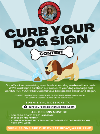 “This contest will serve as a reminder to dog owners to take responsibility for cleaning up after their beloved pet,” Councilwoman Menin said. “It’s frankly unacceptable and should be an expectation, not an option to pick up your dog’s waste,” said Councilwoman Menin.