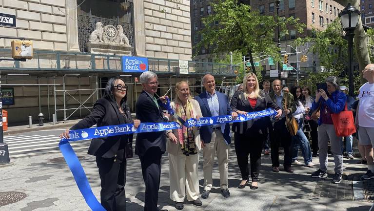 Apple Bank CEO Steven C. Bush was happy to dispel all the rumors as he cut a blue ribbon to mark the official kickoff of the new time-and-temperature display on April 28, which coincided with the bank’s 162nd anniversary.
