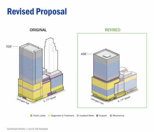 Northwell Health is submitting its proposal for its new towers in its $2 billion, 10-year expansion project to the NYC Planning department, with little additional alterations since its scaled-down proposal still ran into strident opposition at a Community Board 8 hearing.
