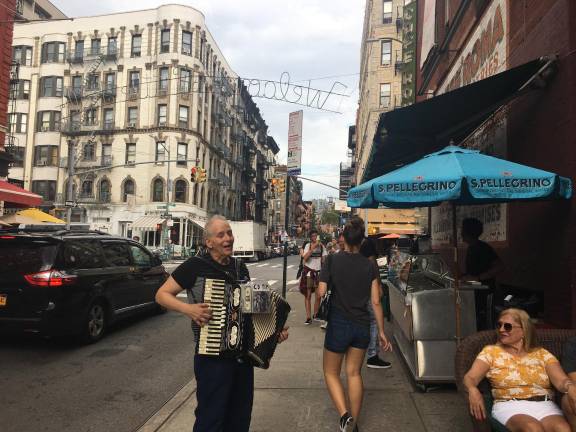 The area has welcomed many visitors this summer for the Little Italy Pedestrian Mall – throughout the summer, Mulberry Street is closed to traffic on weekends, allowing pedestrians to peacefully stroll through the neighborhood. (The pedestrian mall ends September 8.) Although most Italian-American families have left the neighborhood, many will return to attend the Feast of San Gennaro next month.
