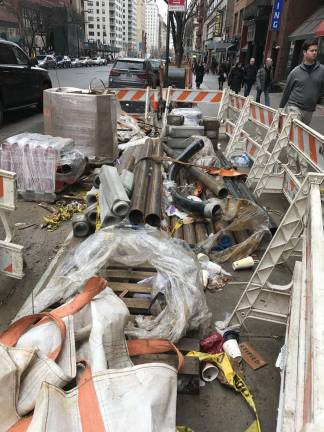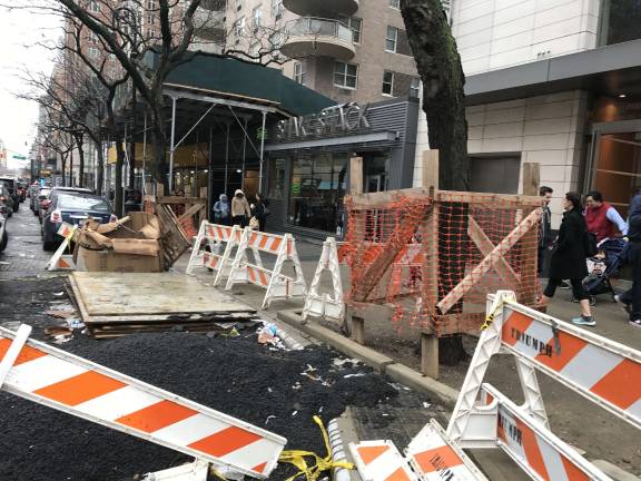 The BID faces some steep early challenges: On Sunday, January 28th, the streetscape was marred by overflowing trash cans, unsightly construction debris, gaping holes in the roadbed, mounds of asphalt and sawhorses partially blocking entrances to retail shops.