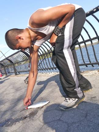 Marmolejos is aware of the potential health risks of fishing in the city. A few years ago, her ex-husband broke out in a rash all over his body after eating fish from Classon Point. He was put on antibiotics. “I think because of pollution,” she said with a shrug and another cast.