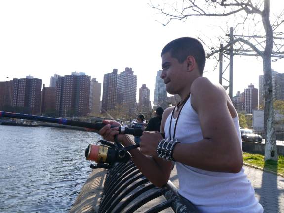 Zawaal lives just a few blocks away on East 102nd Street, but grew up fishing in the Mediterranean Sea in his native Alexandria, Egypt. He moved to New York 20 years ago and took up the pursuit once again. “Some people grow up on the water and it’s a part of them,” he said as he reeled in an empty hook.