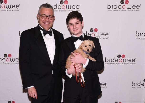 Among the honoreees was Charlie Mindich, a seventh grader at Trevor Day School, who donated the $25,000 he received from his recent Bar Mitzvah to Bideawee’s Second Start rescue program. Mindich is pictured with Jeffrey Toobin, a CNN legal analyst who hosted the event.