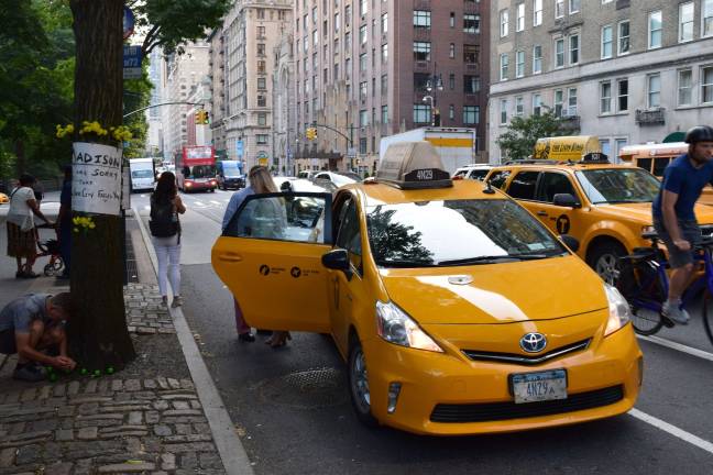 Cyclists and members of the bike advocacy group Transportation Alternatives gathered on Aug. 17 near the site of the Aug. 10 accident for a memorial ride in Lyden’s honor. “Madison,” read a handwritten sign posted to a tree along the curb, “We are sorry that New York City failed you.”