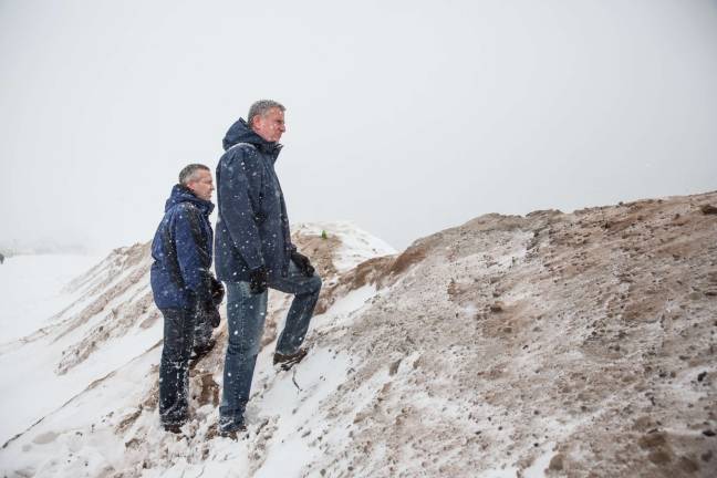 Appleton took some of his favorite shots of the mayor last January during Winter Storm Jonas. One photo, which the Mayoral Photography Office included in its online “Pictures of the Year 2016” collection, shows de Blasio standing on a temporary sand berm at Coney Island, snow falling from a white sky onto a stark landscape. “It kind of had all the elements I look for in a photo,” Appleton said, adding, “The mayor actually said he liked it as well.”